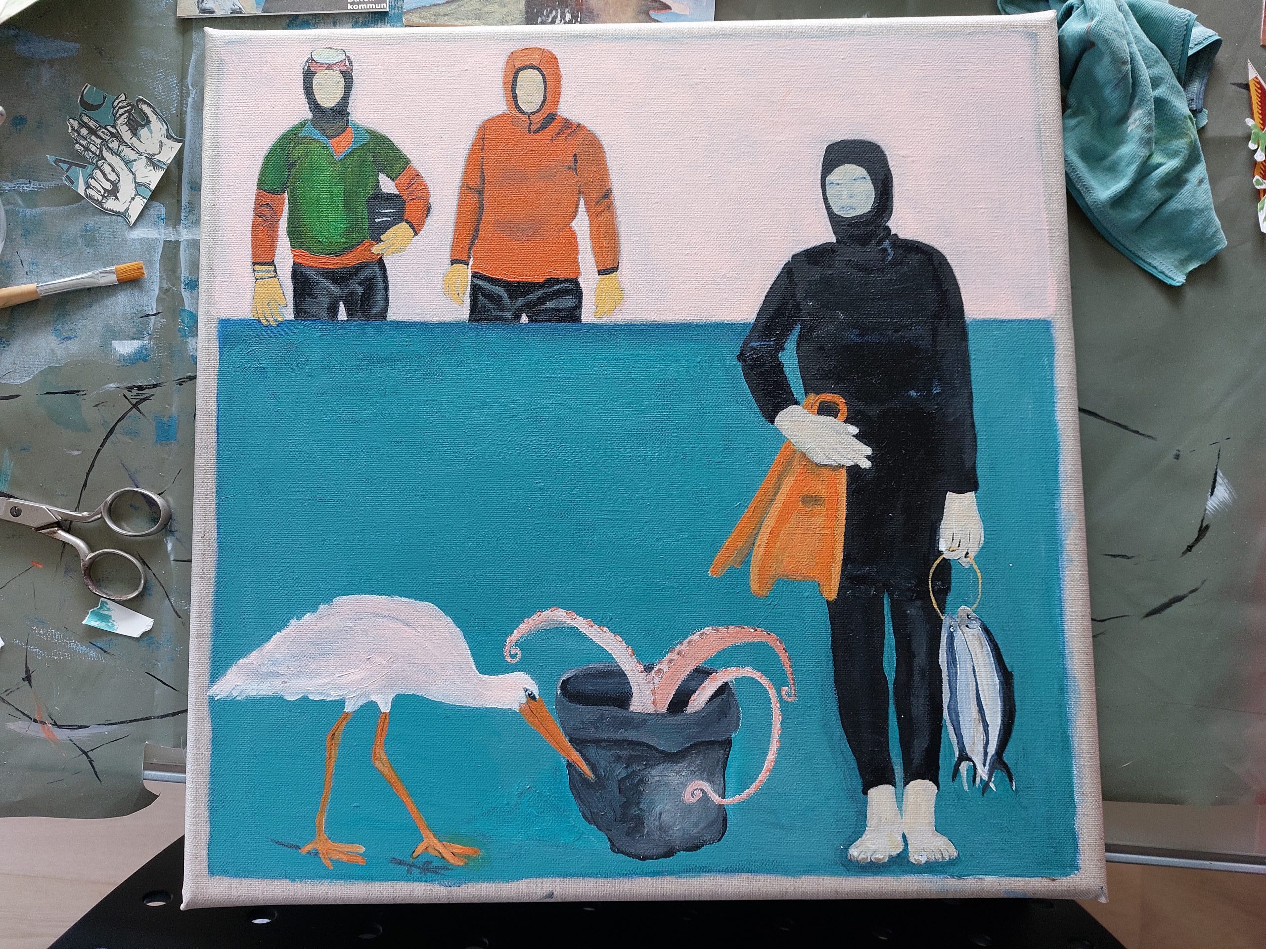 Da die Gruppengröße bei 8 Teilnehmern liegt, ist eine intensive Begleitung möglich, wenn nötig. Ich habe eine klassische Hochschulausbildung und kann alle gängigen Verfahren anleiten und es gibt gute Materialien im mindestens mittleren Preissegment, die zur Verfügung stehen. Sie müssen nur eigene Pinsel und Malgründe mitbringen.