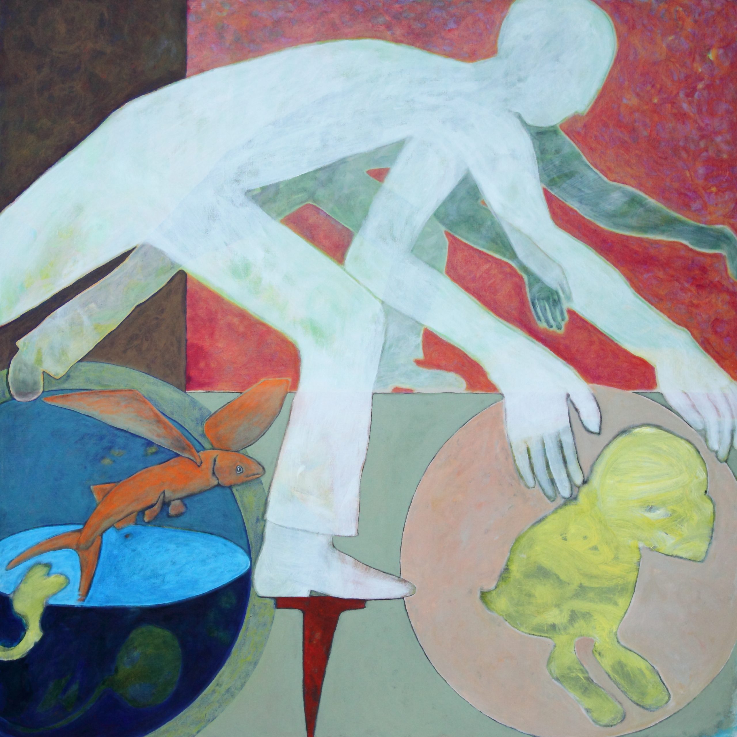 IN DER TAT ist ebenfalls eine Künstlergruppe aus Bonn. Malerei und Collagen stehen gleichberechtigt nebeneinander… begonnen wird fast immer mit einer gemeinsamen Grundierung und Austausch über ein evtl. Thema. Die Arbeit wechselt danach mehrfach zwischen uns… wird ergänzt, übermalt… neu komponiert, bis sie stimmt und dann mit dem Stempel als fertig/abgeschlossen gilt.