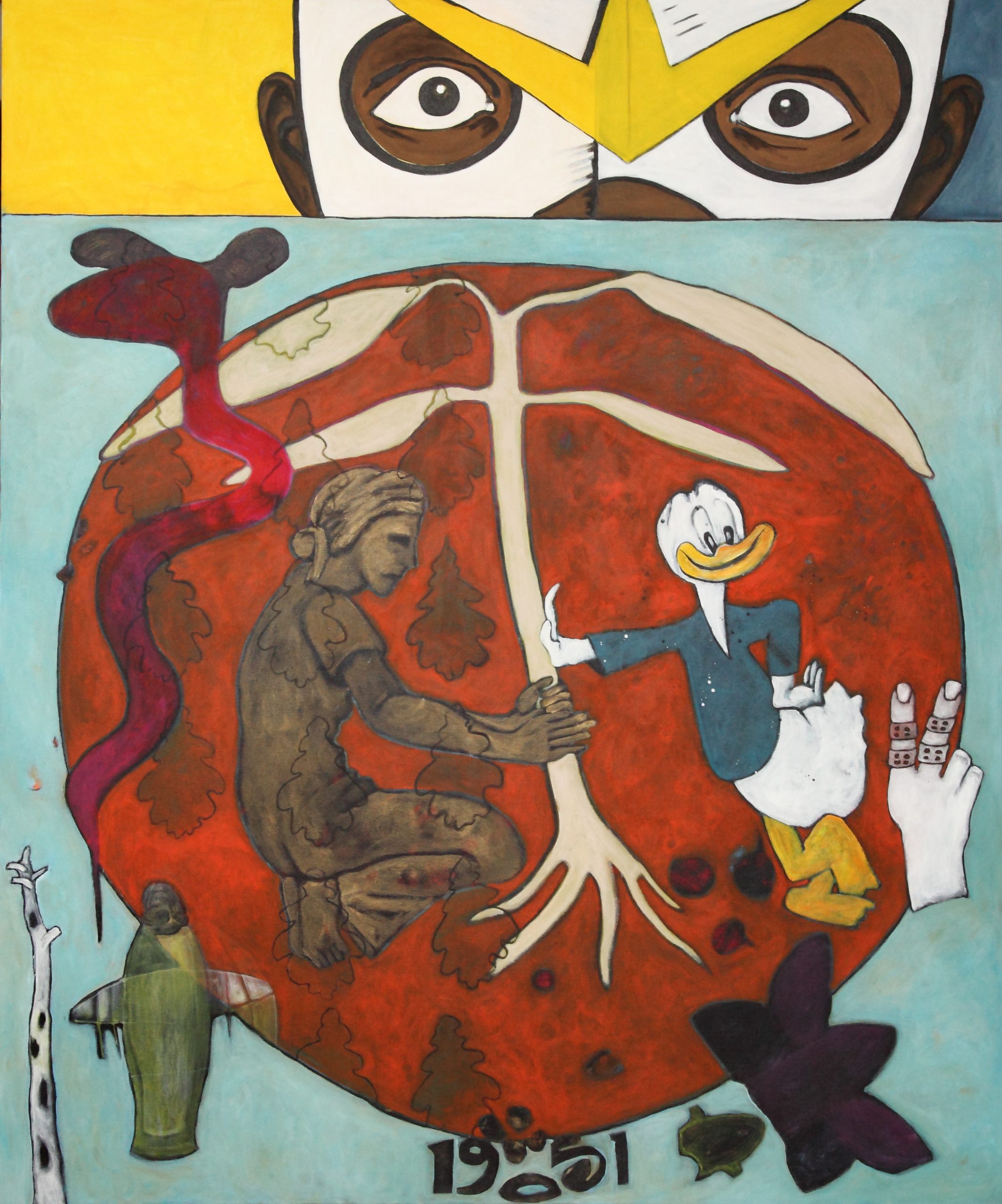 IN DER TAT ist ebenfalls eine Künstlergruppe aus Bonn. Malerei und Collagen stehen gleichberechtigt nebeneinander…begonnen wird fast immer mit einer gemeinsamen Grundierung und Austausch über ein evtl. Thema. Die Arbeit wechselt danach mehrfach zwischen uns…wird ergänzt, übermalt… neu komponiert, bis sie stimmt und dann mit dem Stempel als fertig/abgeschlossen gilt.